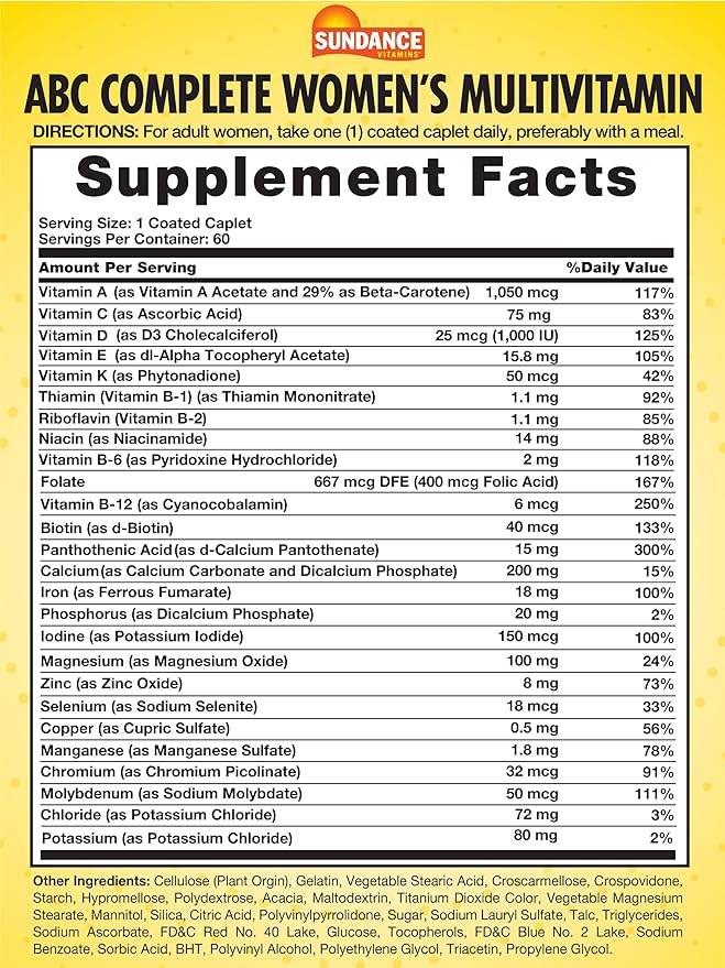 Sundance Women's ABC Complete Multivitamin | 60 Caplets | with Mineral Formula | Non-GMO and Gluten Free Supplement