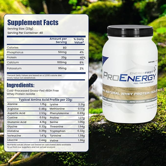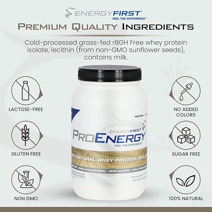 - Indulge in The Highest Quality Ingredients: Experience the ultimate protein powder with EnergyFirst unflavored protein powder. ProEnergy uses only the purest, most bioavailable whey protein isolate available, derived from grass-fed cows not treated with any hormones. Our superior blend of high-quality protein may help you build lean muscle and be perfect for bariatric patients