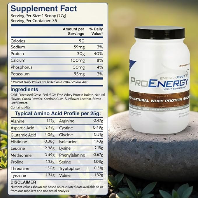 - ๐๐ง๐๐ฎ๐ฅ๐ ๐ ๐๐ง ๐๐ก๐ ๐๐ข๐ ๐ก๐๐ฌ๐ญ ๐๐ฎ๐๐ฅ๐ข๐ญ๐ฒ ๐๐ง๐ ๐ซ๐๐๐ข๐๐ง๐ญ๐ฌ: Experience the ultimate protein powder with EnergyFirst Chocolate Protein Powder. ProEnergy uses only the purest, most bioavailable whey protein isolate available, derived from grass-fed cows not treated with any hormones or antibiotics. Our superior blend of high-quality protein may help you build lean muscle and be perfect for bariatric patients.