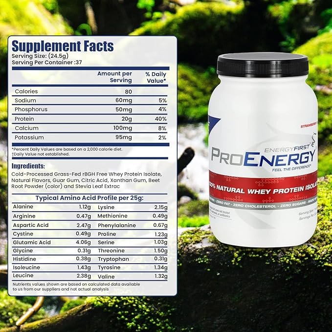 - ๐๐ง๐๐ฎ๐ฅ๐ ๐ ๐๐ง ๐๐ก๐ ๐๐ข๐ ๐ก๐๐ฌ๐ญ ๐๐ฎ๐๐ฅ๐ข๐ญ๐ฒ ๐๐ง๐ ๐ซ๐๐๐ข๐๐ง๐ญ๐ฌ: Experience the ultimate protein powder with EnergyFirst Strawberry Protein Powder. ProEnergy uses only the purest, most bioavailable whey protein isolate available, derived from grass-fed cows not treated with any hormones or antibiotics. Our superior blend of high-quality protein may help you build lean muscle and be perfect for bariatric patients.