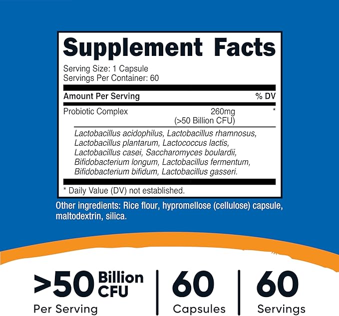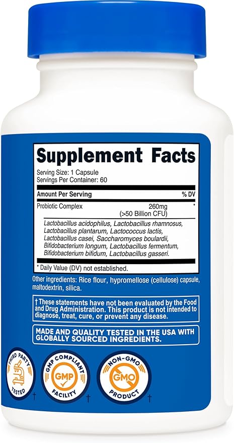 Nutricost Probiotic Complex - 50 Billion CFU, 60 Capsules - Probiotic for Men and Women - Vegetarian Capsules, Non-GMO, Gluten Free