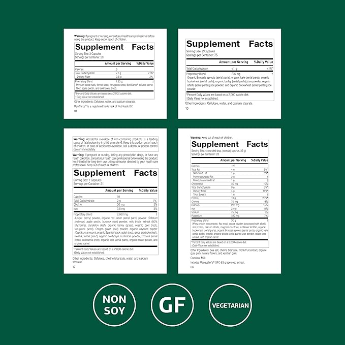- Vegetarian Detox Kit: Supplement quantities are sufficient to cover or exceed the duration of the 21-day program