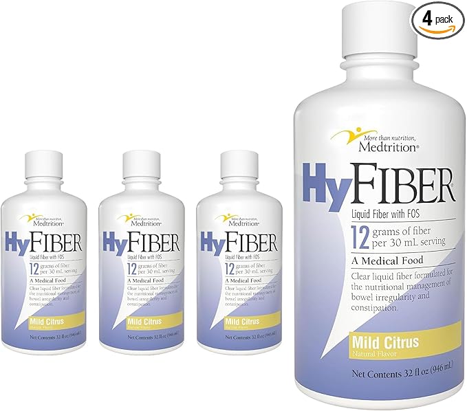 Medtrition HyFiber Daily Liquid Fiber for Regularity and Soft Stools, 12 Grams Soluble Fiber, 32 fl oz 4 Pack