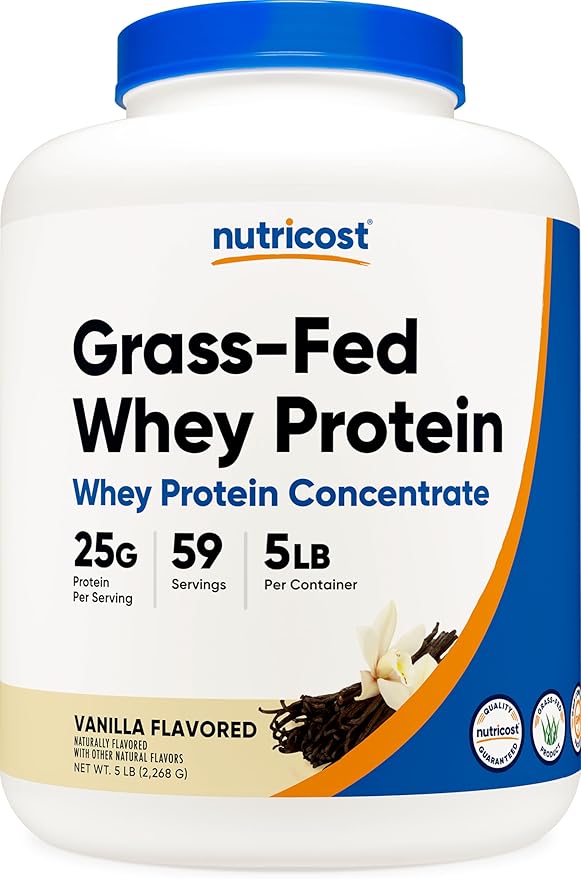 Nutricost Grass-Fed Whey Protein Concentrate (Vanilla) 5LBS - Undenatured, Non-GMO, Gluten Free, Natural Flavors