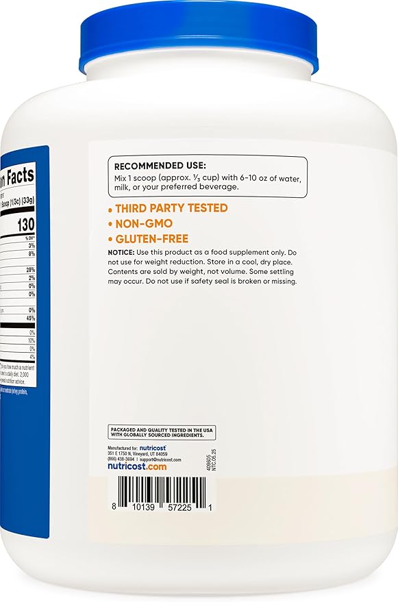 Nutricost Grass-Fed Whey Protein Concentrate (Unflavored) 5LBS - Undenatured, Non-GMO, Gluten Free
