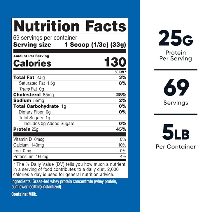 - 5LBS of Grass-Fed Whey Protein Concentrate Per Bottle