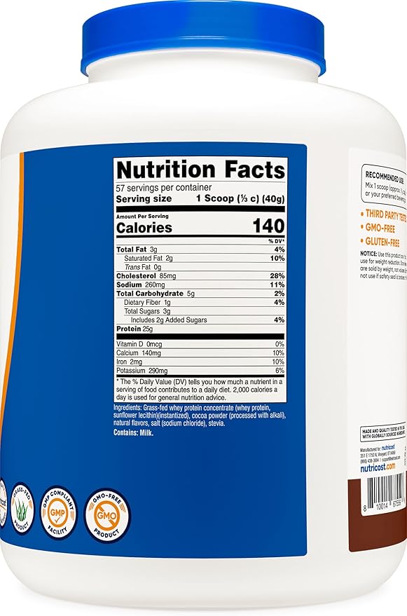 Nutricost Grass-Fed Whey Protein Concentrate (Chocolate) 5LBS - Undenatured, Non-GMO, Natural Flavors…