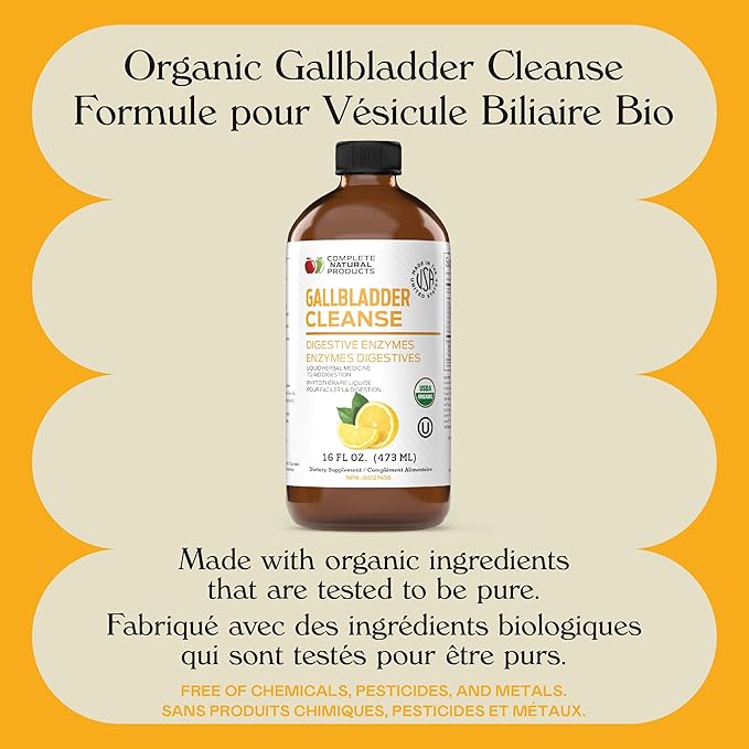 - SPEED UP METABOLISM! Certified USDA Organic and OU Kosher. This Gallbladder Formula is a liquid which absorbs quickly and starts helping immediately. Relieve pain under the ribs, bloating, indigestion, and shoulder tension.