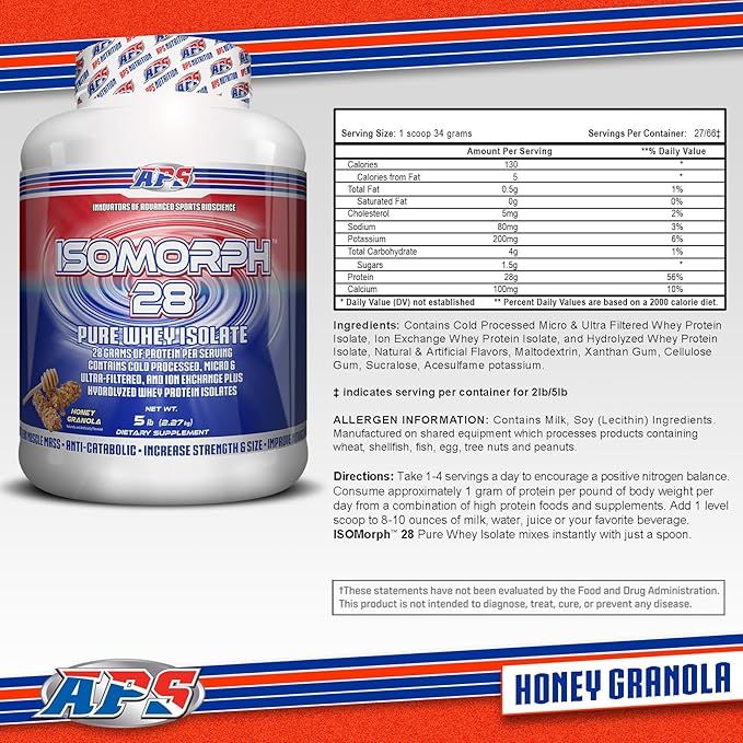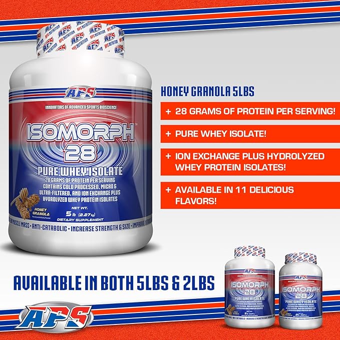 APS Nutrition Isomorph 28 Protein Powder | Pure Whey Isolate | Cold Pressed, Ultra- Filtered, & Ion Exchange Isolates | 28g Protein | 5 Pound (Honey Granola)