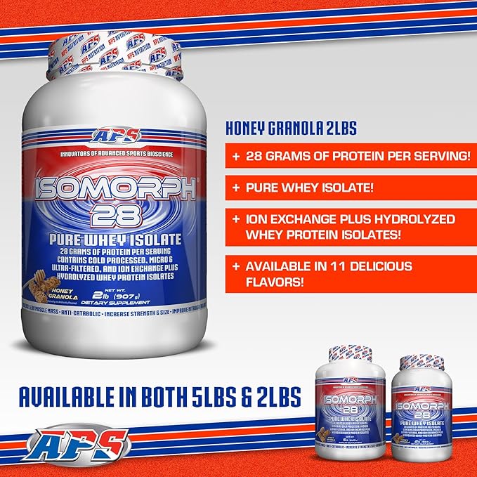 APS Nutrition Isomorph 28 Protein Powder | Pure Whey Isolate | Cold Pressed, Ultra- Filtered, & Ion Exchange Isolates | 28g Protein | 2 Pound (Honey Granola)