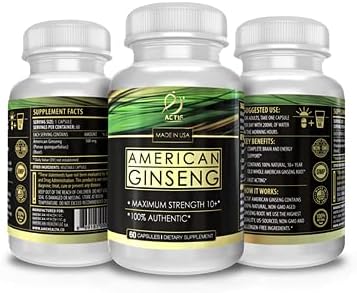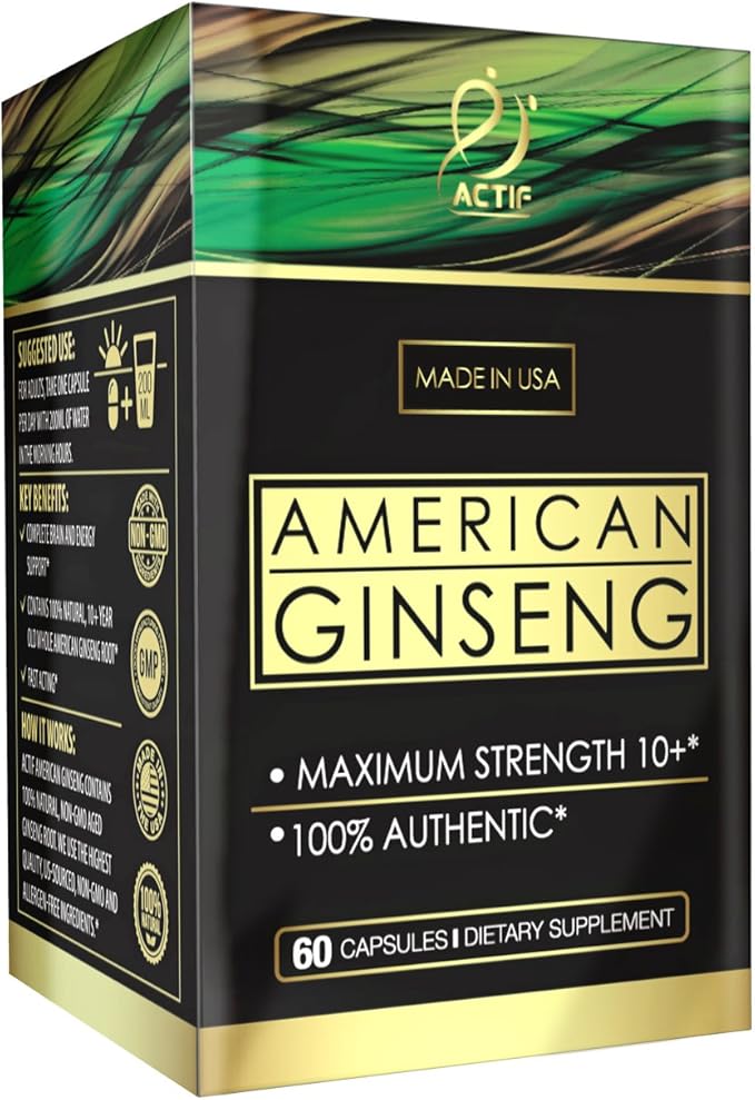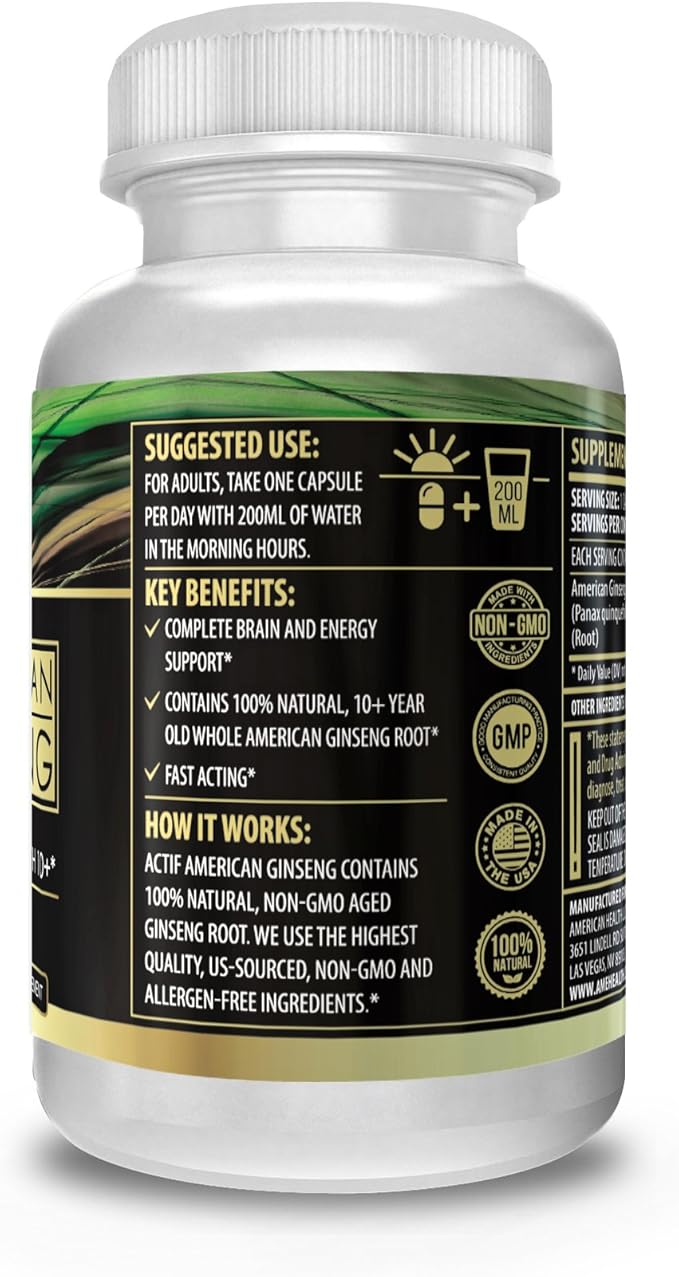 Actif American Ginseng - 100% Authentic 10 Year Old Ginseng, Non-GMO, 500mg - Made in USA