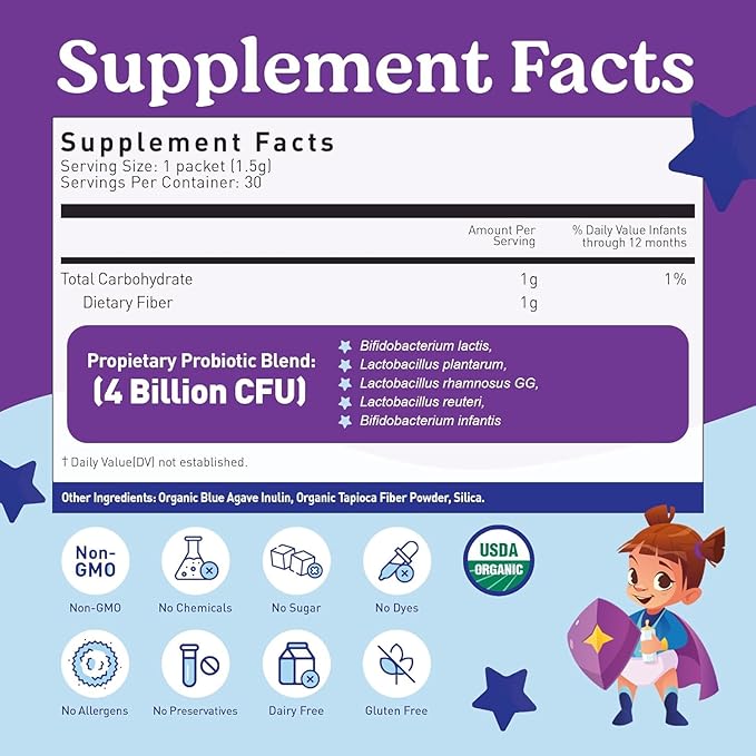 - USDA ORGANIC CERTIFIED & SUGAR FREE. Make sure that the benefits of a multi-strain clinically studied probiotic aren't cancelled out before they even reach your toddlers' tummy. Probiotics have to be sugar free AND USDA Organic Certified. ALLERGEN FREE.