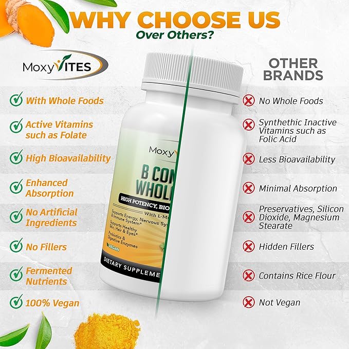 - METHYLATED B COMPLEX VITAMINS: Formulated with active forms of B vitamins for enhanced bioavailability. This Super B complex is made with natural and organic ingredients, free from synthetic folic acid. The high-potency formula provides multi-system support and includes probiotics and enzymes for added digestive support. Crafted to meet all your B vitamin needs.