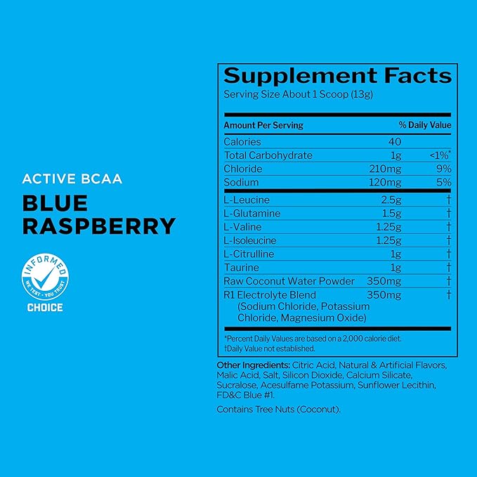 Rule 1 Active BCAA - Performance, Hydration, and Recovery Support with 5g BCAAs + Electrolytes, L-Glutamine, and Citrulline (30 Servings, Blue Raspberry)