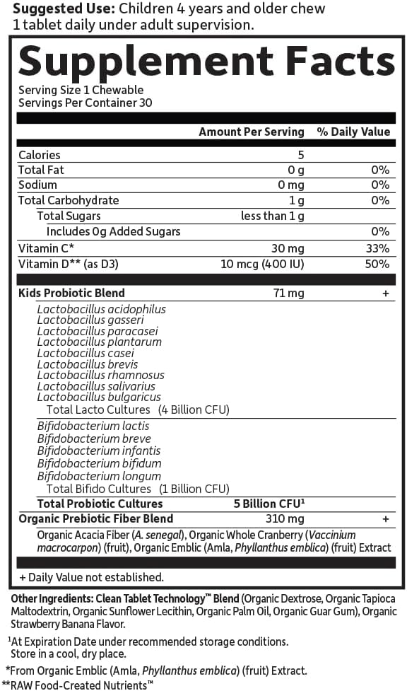 Garden of Life-Dr. Formulated Probiotics Organic Kids-Strawberry Banana-Acidophilus and Probiotic Promotes Immune System,Digestive Health-Gluten,Dairy,Soy-Free,No Sugar Added-Chewables (30 Count)