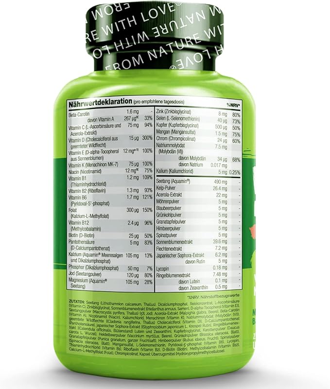 - PREMIUM PLANT-BASED INGREDIENTS: Nautrelo Whole Food Multivitamins are made with plant-based vitamins and minerals including Vitamin D3 from lichen, Vitamin E from Sunflower, and Calcium and Magnesium from marine algae.