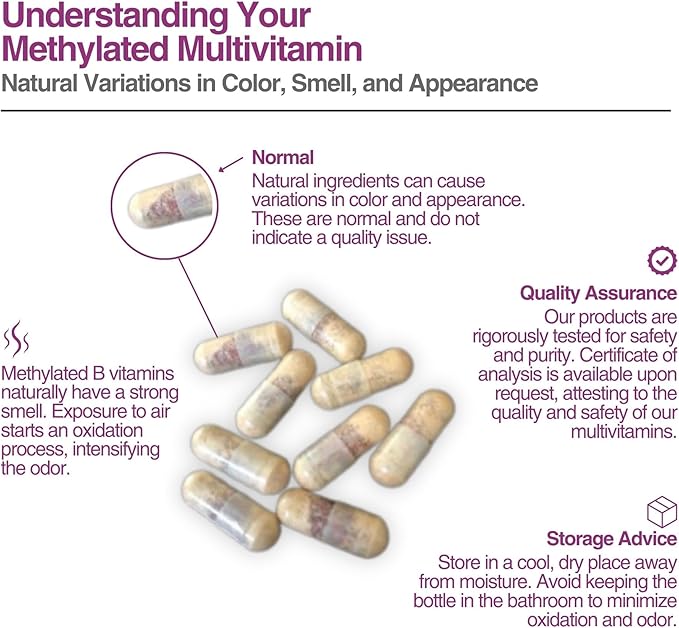 - BIOAVAILABLE METHYLFOLATE FOR HOMOCYSTEINE BALANCE: Our MTHFR multivitamin without folic acid boasts Choline, methyl folate (5-MTHF), Methyl B12, B6, and other methylated B vitamins. This combination supports a healthy homocysteine balance and metabolism, contributing to overall wellness.