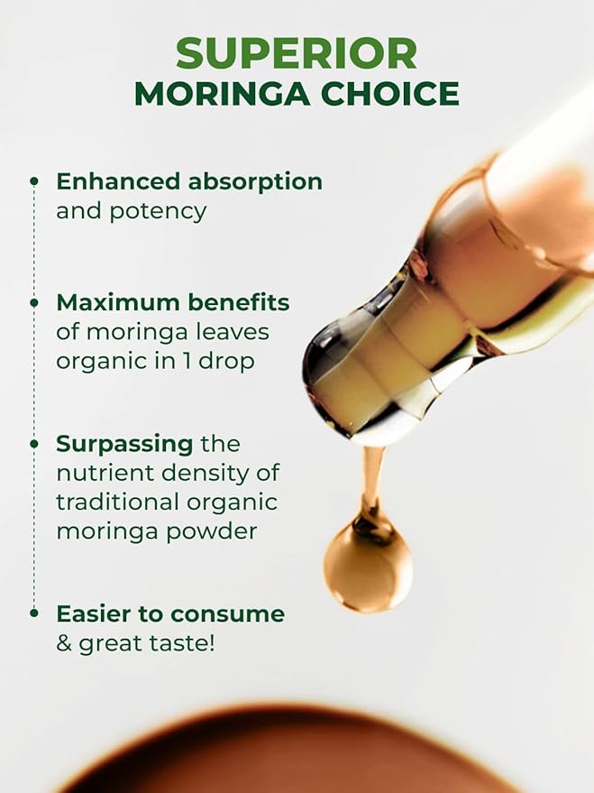 - Superior to Moringa Powder: Upgrade from moringa powder to our Moringa Drops, offering enhanced absorption and potency. Our liquid form ensures you receive the maximum benefits of moringa leaves organic, with more vitamins and minerals per drop.
