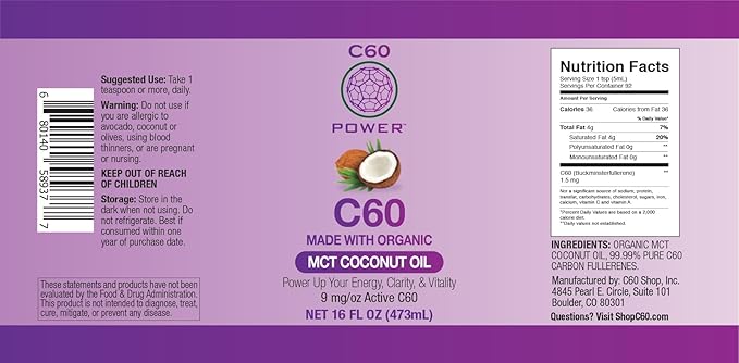 - POWER UP YOUR ENERGY, CLARITY, AND VITALITY - C60 antioxidant properties boost energy, mental clarity, and stamina, promotes a balanced immune response, and fuels energy for active lifestyles