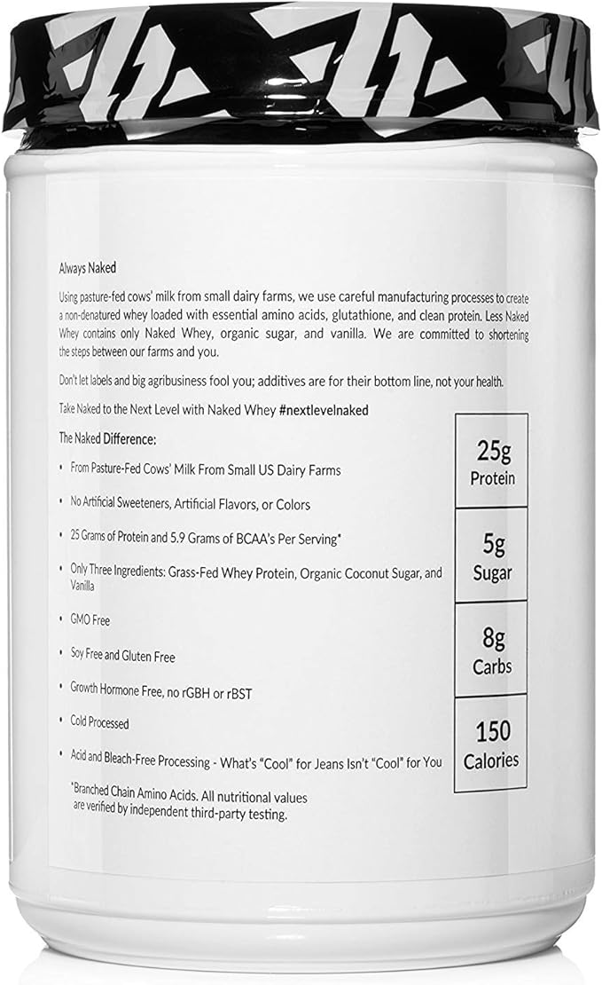 NAKED Vanilla Whey Protein 1Lb, Only 3 Ingredients, All Natural Grass Fed Whey Protein Powder + Vanilla + Coconut Sugar- GMO-Free, Soy Free, Gluten Free. Aid Muscle Growth, 12 Servings