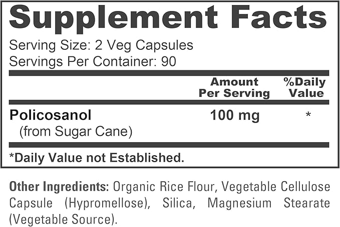 - Policosanol With 100mg Per ServingServing is 2 capsules