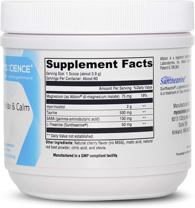 MYOXCIENCE Myo Relax & Calm | Myo-Inositol, L-Theanine, Taurine, Magnesium & GABA | Supports Sleep, Neurotransmitter & Hormone Support