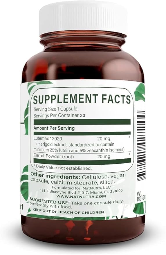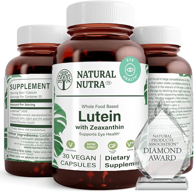 Natural Nutra Lutein and Zeaxanthin Supplement, Maintain Vision Health, Protects Cell in Eyes, Enhance Level of Zeaxanthin & Isomers, Support Eye Health, Gluten Free, Soy Free, 20mg - 30 Capsules