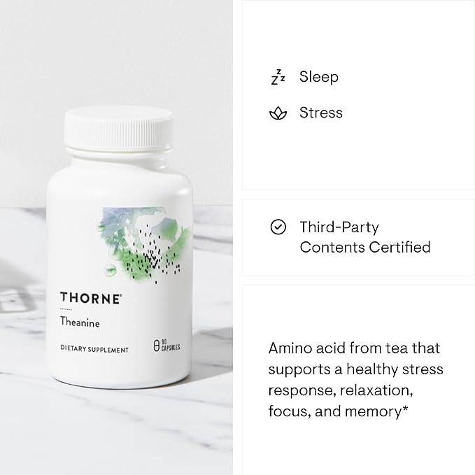 THORNE - Theanine - 200mg of L-Theanine - Support a Healthy Stress Response, Relaxation, and Focus - Increases Brain Alpha-Wave Production* - 90 Capsules