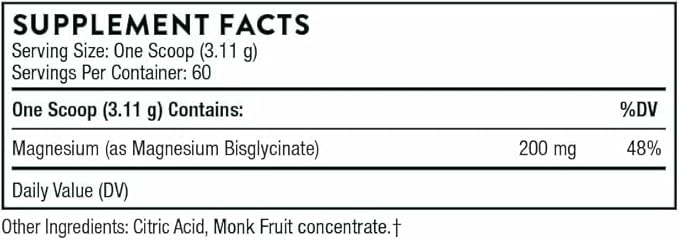 THORNE - Magnesium Bisglycinate - Powdered Magnesium Formula - Support Restful Sleep, Muscle Relaxation, Heart Health, and Metabolism* - NSF Certified for Sport - 60 Servings - 6.5 Oz Jar