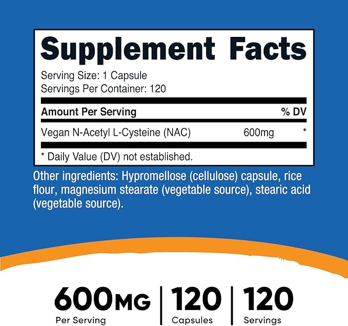 Nutricost N-Acetyl L-Cysteine (NAC) 600mg, 120 Vegetarian Capsules - Non-GMO, Gluten Free, Vegetarian Caps
