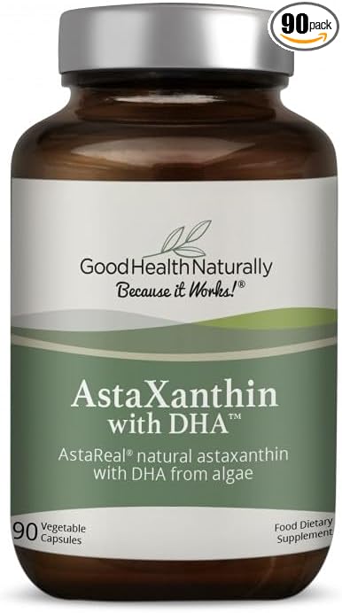 AstaXanthin with DHA - Antioxidant for Skin | 90 Vegetable Capsules - Good Health Naturally