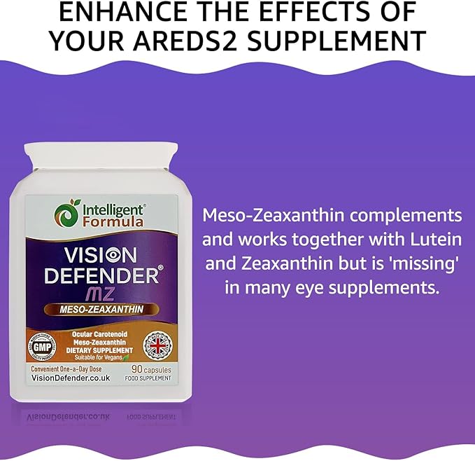- PERFECT COMPLEMENT TO LUTEIN SUPPLEMENTS – Already taking a vision supplement containing lutein but not Meso-Zeaxanthin? Taking an AREDS2 formula such as Vision Defender AMD eye supplement? Enhance the power of your lutein product with the addition of Vision Defender MZ. Meso-Zeaxanthin complements and works together with lutein but is 'missing' in many eye supplements. Add this key antioxidant carotenoid nutrient for maximum eyecare support. Why risk your precious eye health and eyesight?