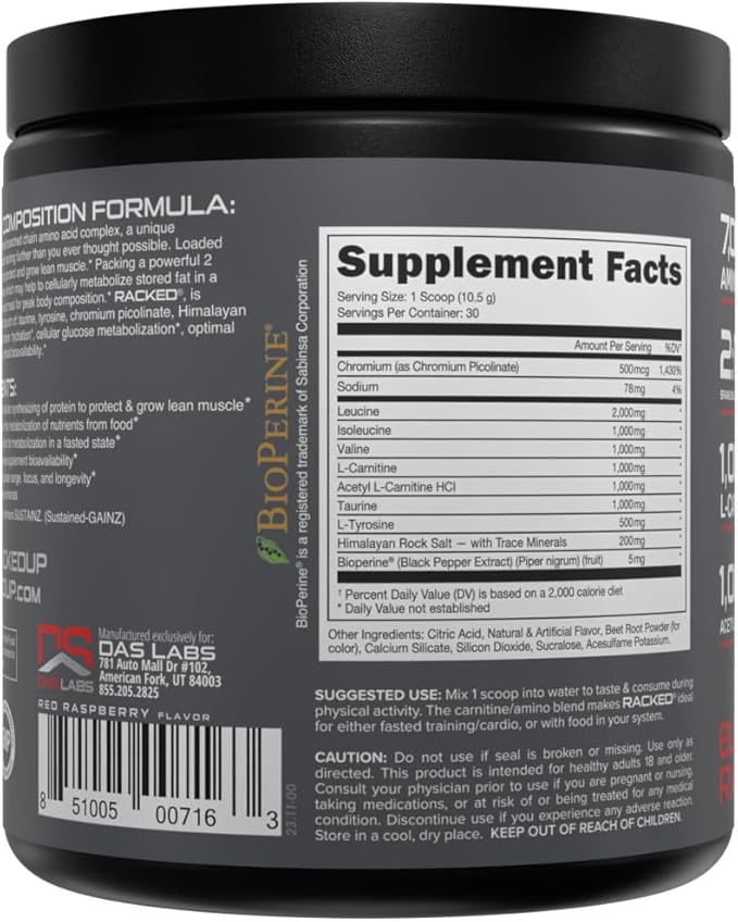 - SOURCED FROM PLANTS - BCAAs carry around the stigma of tasting horrible. This is because cheaper brands source their BCAAs from Horse hair or Duck feathers. RACKED is sourced from plants which allows for less flavor masking, thus better flavor.