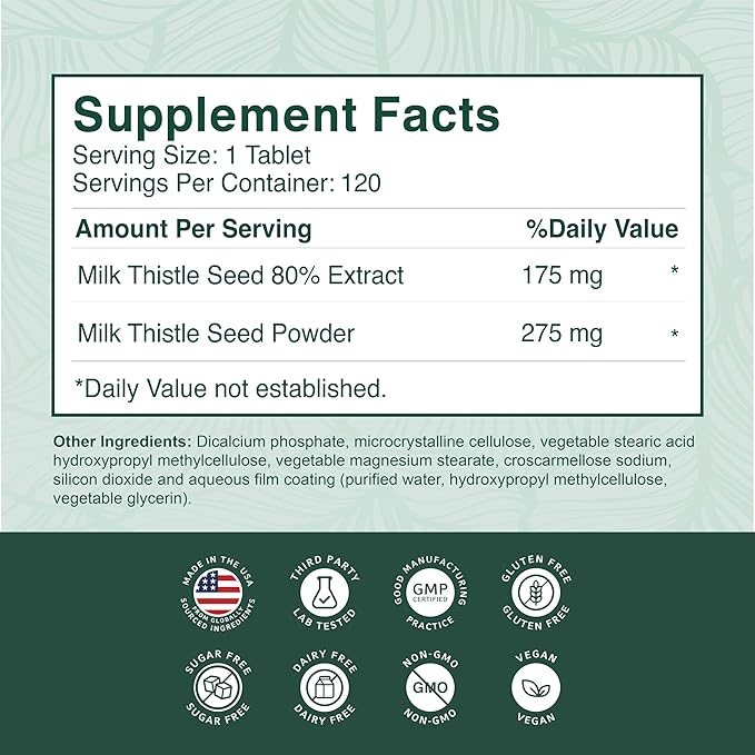 - REAL, HIGH-POTENCY 450MG FORMULA: Each tablet contains 450mg of a milk thistle complex, with 175mg of standardized Milk Thistle extract and 275mg of Milk Thistle seed powder providing a high-quality, effective dose. We don’t rely on inflated extraction ratios, so you can trust the potency of every serving.