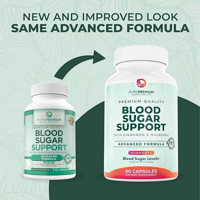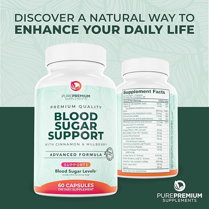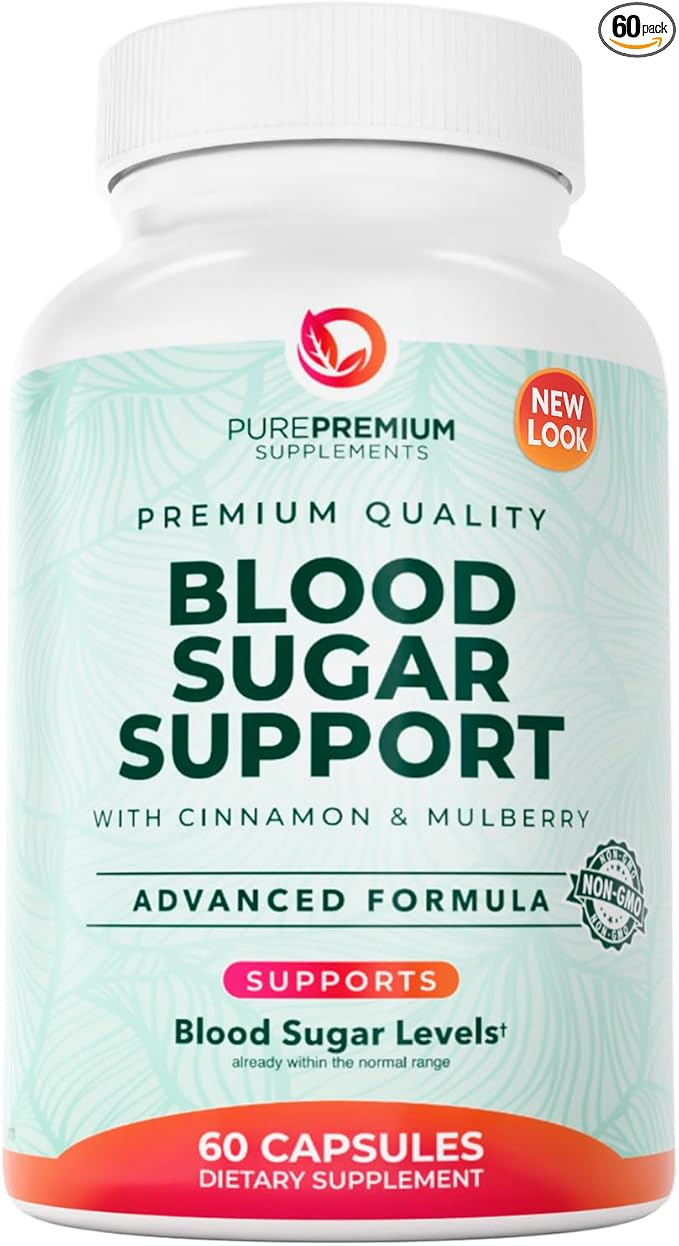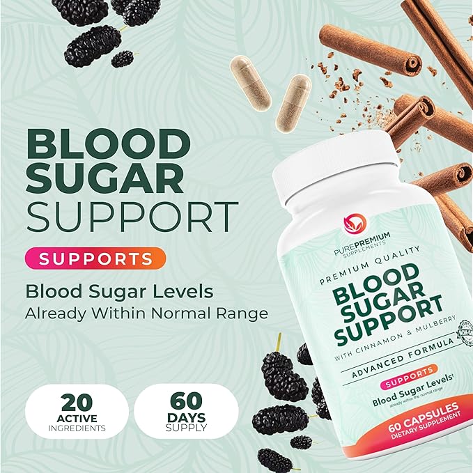 PurePremium Normal Blood Sugar Support Supplement - 20 Active Ingredients Complex to Support Blood Sugar Levels Already in The Normal Range - with Cinnamon, Bitter Melon, Chromium, Mulberry - 60ct