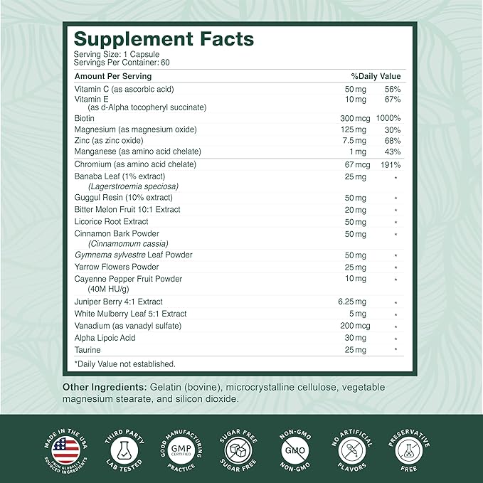 - 60 DAYS SUPPLY: With 60 easy-to-swallow capsules per bottle, this supplement offers a two-month supply, providing lasting support for your blood sugar and overall health with just one capsule a day.*