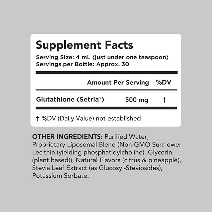 AMANDEAN Liposomal Glutathione Supplement. Liquid Reduced Setria 500mg. Immune Support, Brain Health, Liver Detox, Skin Health. Phosphatidylcholine from Non-GMO Sunflower Lecithin. Soy-Free & Vegan.