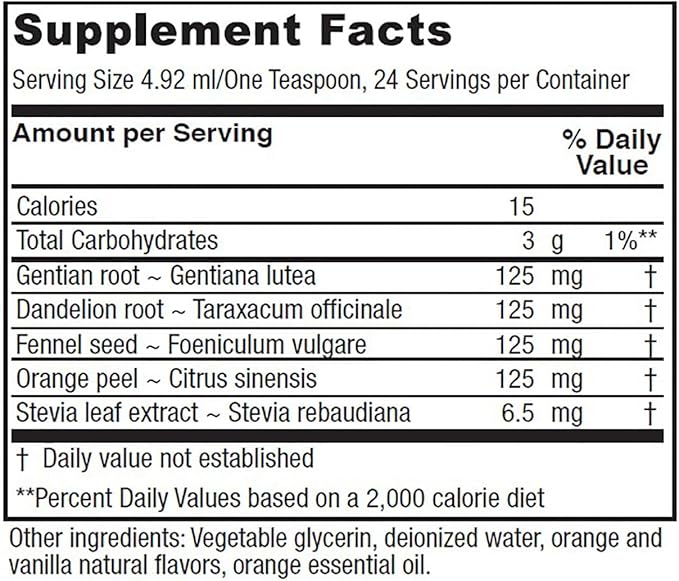 - Bitters Tonic promotes healthy digestive processes. Packaging may vary