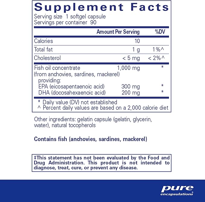 Pure Encapsulations EPA/DHA Essentials - Fish Oil Concentrate Supplement to Support Cardiovascular Health - Premium EPA & DHA Supplement with Omega 3-90 Softgel Capsules