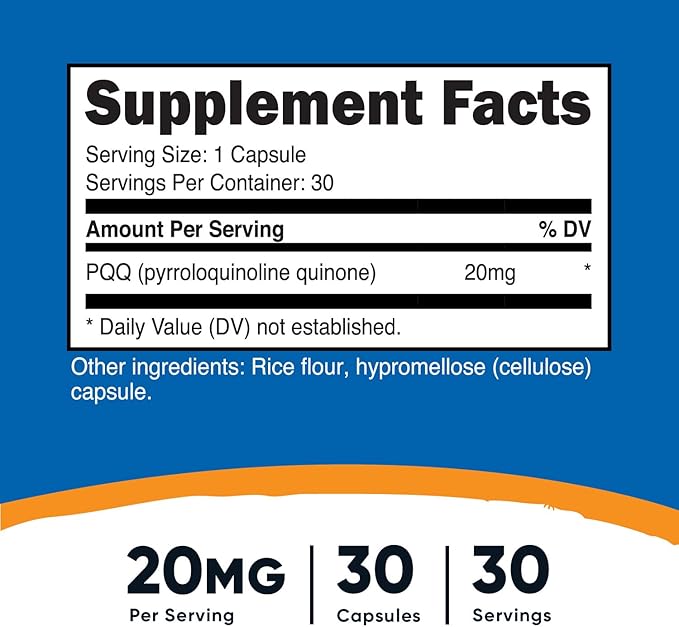 Nutricost PQQ (Pyrroloquinoline Quinone) 20mg, 30 Capsules - Vegetarian Capsules, Non-GMO, Gluten Free