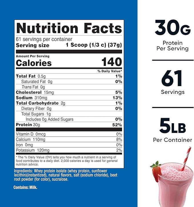 - 5 Pounds of Strawberry Milkshake Whey Protein Isolate Powder Per Bottle