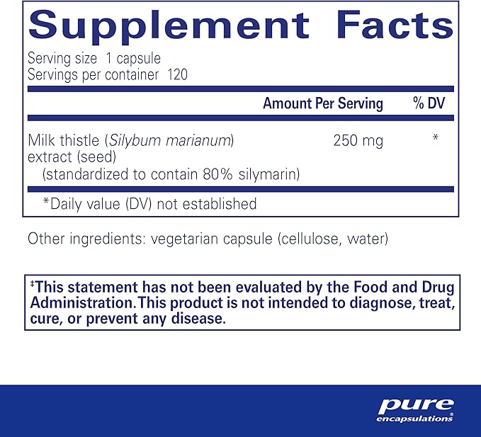 Pure Encapsulations Silymarin - 250 mg Milk Thistle Per Capsule - Liver Health Support - Antioxidants Supplement - Non-GMO & Vegan - 120 Capsules