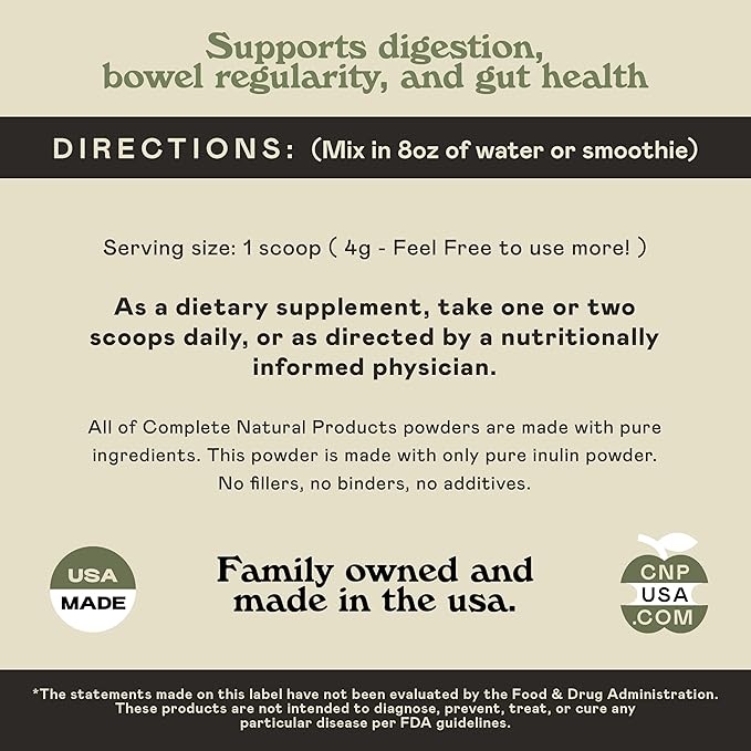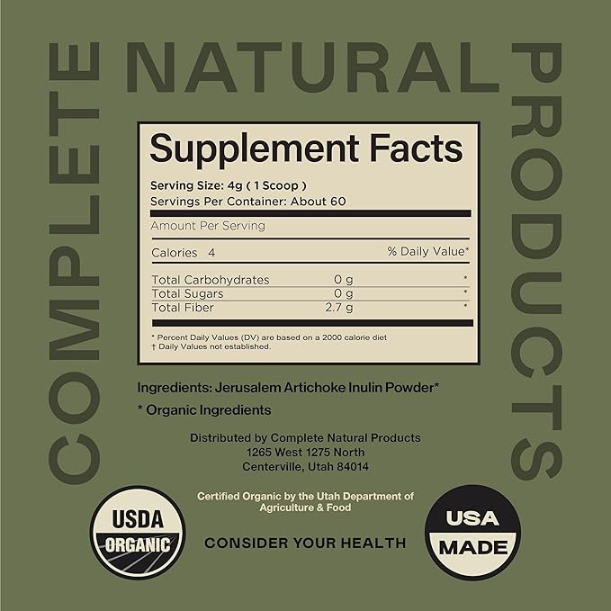 Pure Organic Inulin Powder Fiber Supplement - (Jerusalem Artichoke) Prebiotic Bulk Inulin Fiber Powder 8oz Digestion & Gut Health