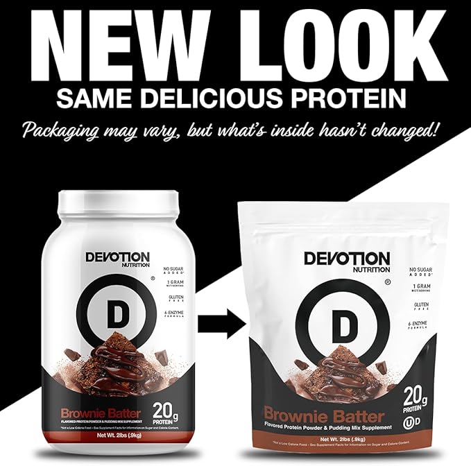 Devotion Nutrition Protein Powder Brownie Batter – 20g Whey Isolate & Casein Protein Blend – No Added Sugar, Low Carb, Gluten-Free, Keto-Friendly, 1g MCT, Kosher – 2lb Pouch