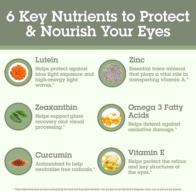 - PLUS MORE EYE FORTIFYING INGREDIENTS - Curcumin, Zinc, Vitamin E, and Omega-3 fatty acids support hard-working eyes.