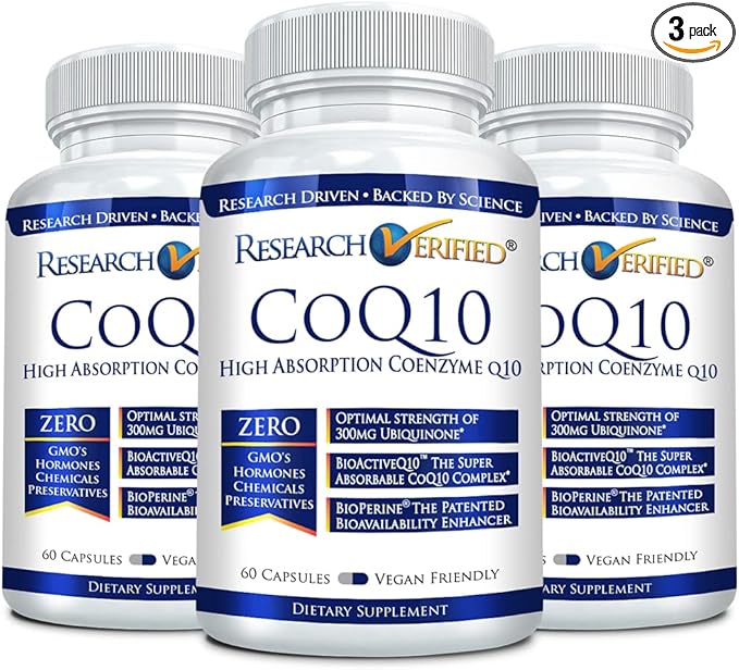 Research Verified CoQ10-100% Pure Extra Strength 300mg CoQ10 – Improved Absorption and Bioavailability with Bioperine - Boost Antioxidant Levels, Improve Cardiovascular Health, 180 Vegan Capsules