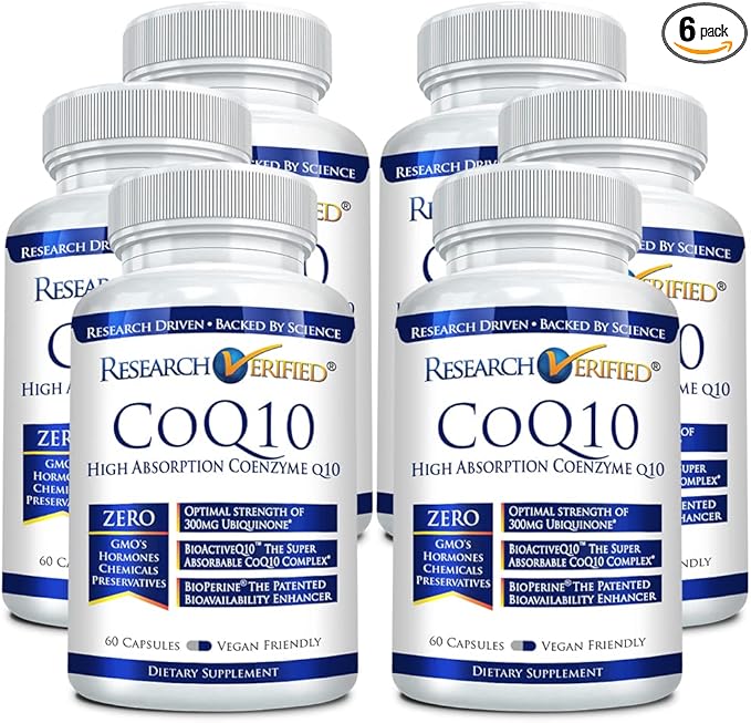 Research Verified CoQ10-100% Pure Extra Strength 300mg CoQ10 – Improved Absorption and Bioavailability with Bioperine - Boost Antioxidant Levels, Improve Cardiovascular Health, 360 Vegan Capsules