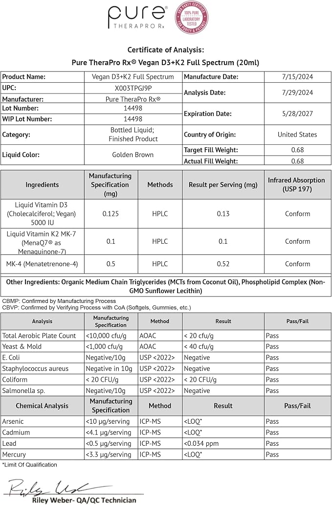 - πππππππ ππππππ: All our supplements are lab-tested for quality and purity. We do not use fillers, excipients, or flow agents in our supplements. Pure Thera Vitamin D3 + K2 has no gluten, wheat, yeast, animal or dairy products, artificial preservatives, sweeteners, or colors.