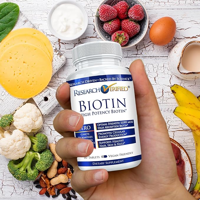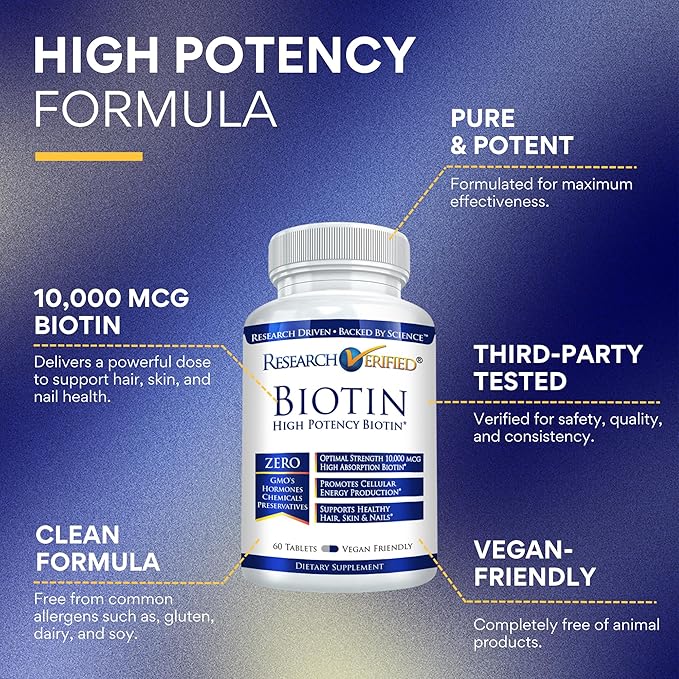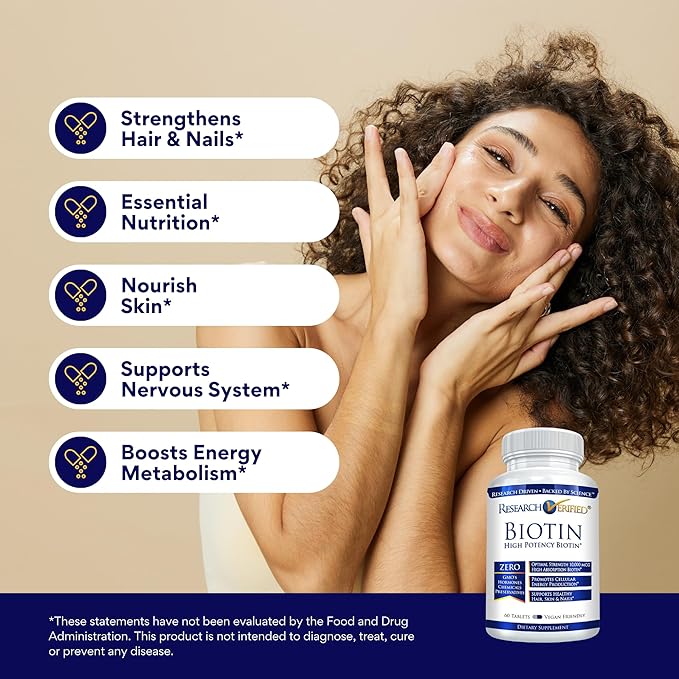 Research Verified Biotin – Pure Biotin Extra Strength 10,000mcg for Improved Hair, Skin and Nail Health - 360 Vegan Tablets