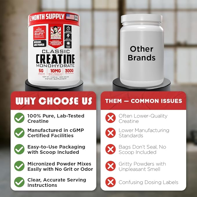 Old School Labs 5000mg Creatine Monohydrate Micronized Powder with BioFit™ (Max Absorption), Performance & Recovery, Strength, Endurance, Focus - Made in USA - Men & Women - 60 Servings
